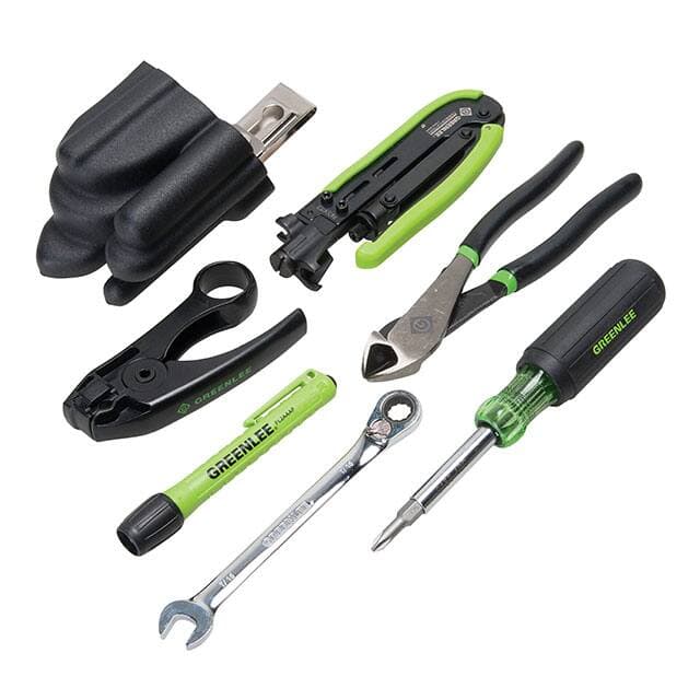 - Belt Clip, Cable Stripper, Crimper, Cutter, Flashlight, Multi-Tool, Pouch, Wrench