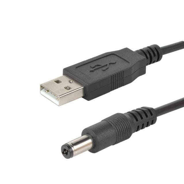 - Barrel Plug - 2.1mm ID, 5.5mm OD to USB A Male Plug